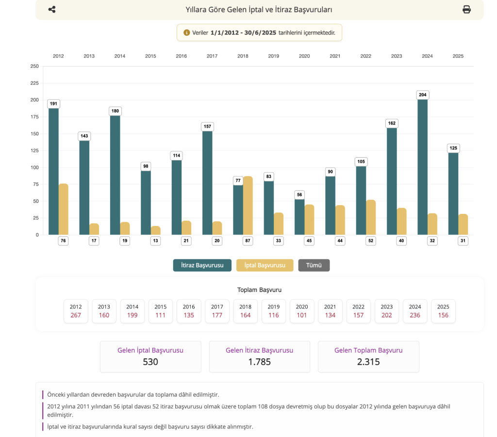 2012 – 2025 Arasında Açılan Norm Denetimi Davaları